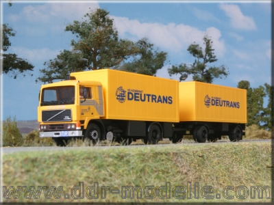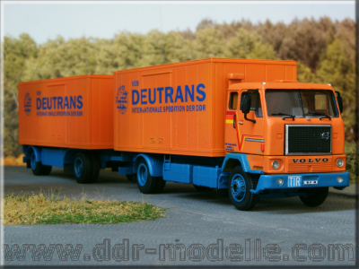 Übrigens waren die Fahrzeuge nicht immer mit Deutrans-Beschriftung unterwegs, sondern wurden auch mit Werbung der unterschiedlichsten DDR-Marken versehen. Hierbei musste der Herstellerbetrieb der Marke mit der ein LKW beschriftet war, nicht unbedingt in der Nähe des Stationierungsortes liegen. Als größter Standort ist Potsdam zu erwähnen, wo zuletzt über 160 Fahrzeuge verschiedenster Art beheimatet waren. Von dort wurde wohl auch der Großteil der Ford Escort-Kastenwagen (Courier)und Ford Transit, die für den Kurier- und Express-Zustelldienst beschafft worden waren, eingesetzt.