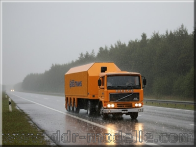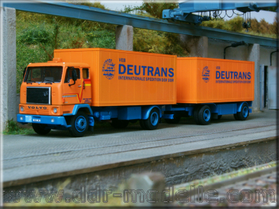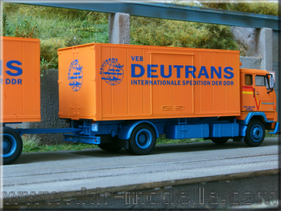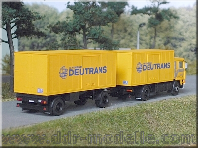Übrigens waren die Fahrzeuge nicht immer mit Deutrans-Beschriftung unterwegs, sondern wurden auch mit Werbung der unterschiedlichsten DDR-Marken versehen. Hierbei musste der Herstellerbetrieb der Marke mit der ein LKW beschriftet war, nicht unbedingt in der Nähe des Stationierungsortes liegen. Als größter Standort ist Potsdam zu erwähnen, wo zuletzt über 160 Fahrzeuge verschiedenster Art beheimatet waren. Von dort wurde wohl auch der Großteil der Ford Escort-Kastenwagen (Courier)und Ford Transit, die für den Kurier- und Express-Zustelldienst beschafft worden waren, eingesetzt.