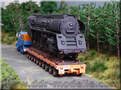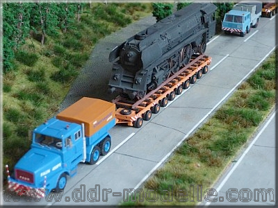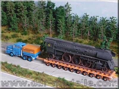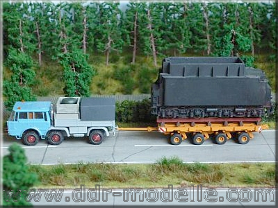Faun-Zugmaschine 45.45/45W mit Scheuerle-Schwerlastmodulen und Dampfspender der Reko-Baureihe 01.5